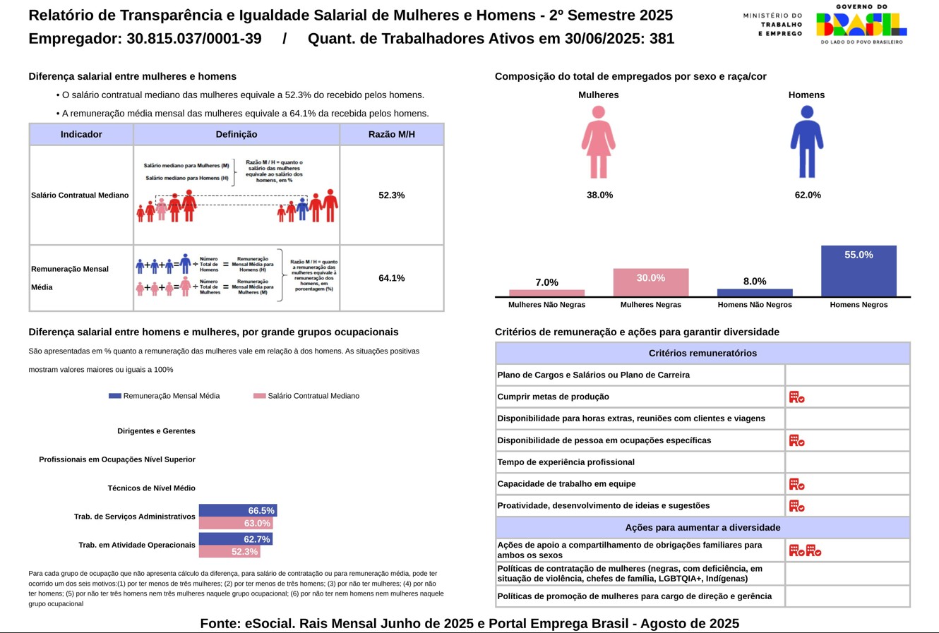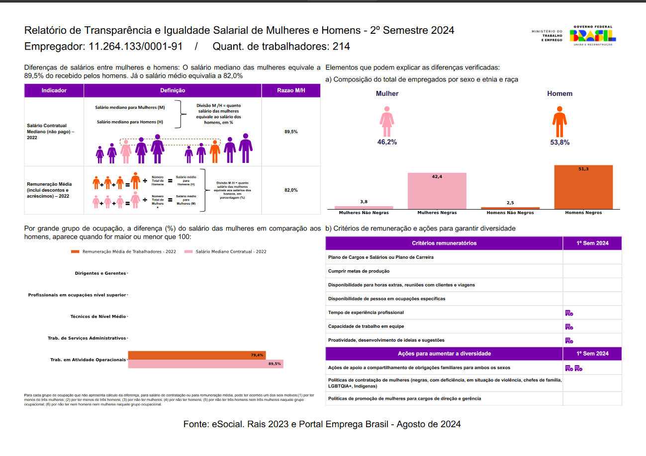 Abaixo, disponibilizamos o Relatório de Transparência Salarial completo, que